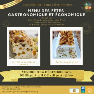 L’occasion d’apprendre à confectionner un « repas des fêtes gastronomique et économique » au côté de Didier Garcia, chef cuisinier et Rémy Erhard, chef pâtissier chez Vatel.