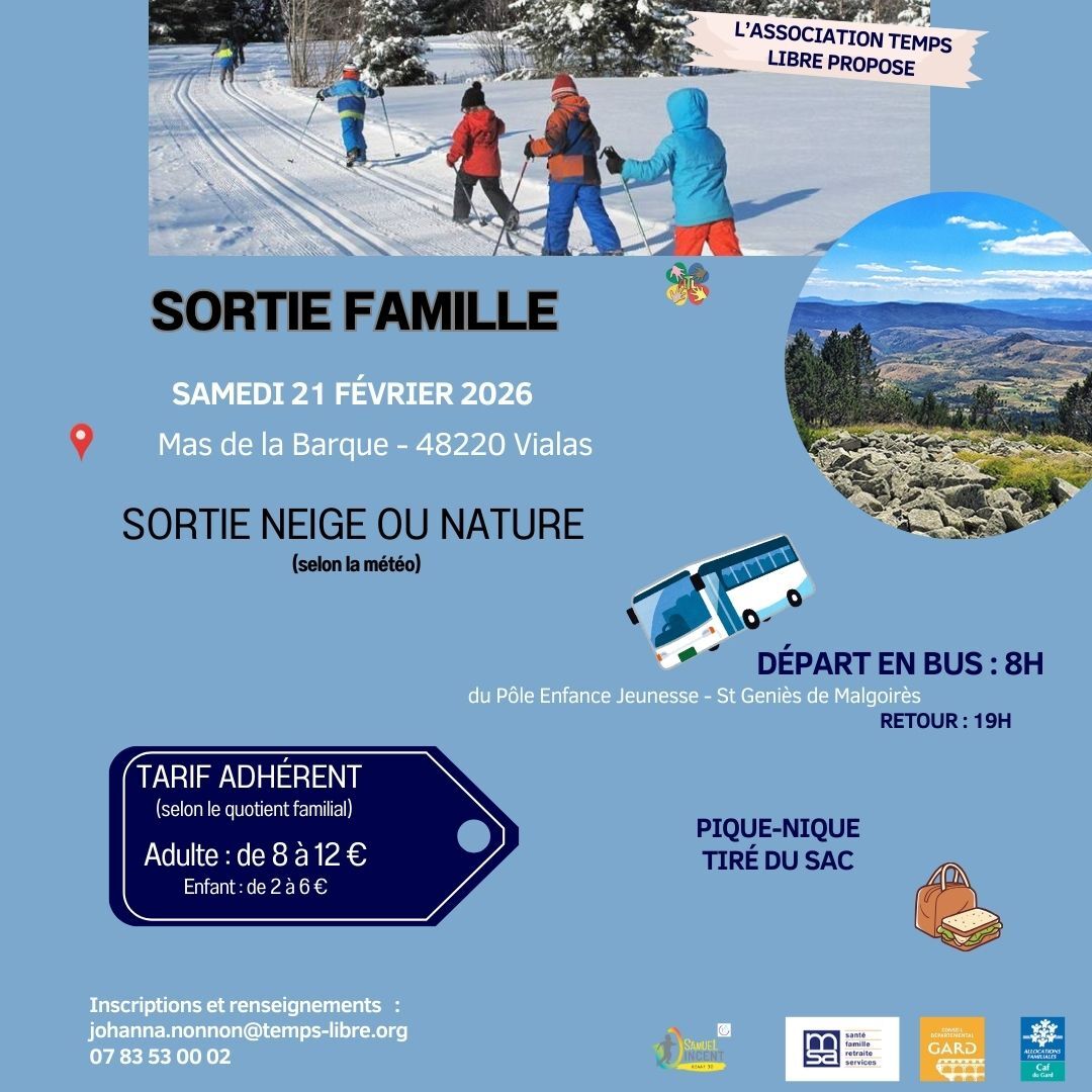 Sortie Famille « Neige » Samedi 21 février 2026Une sortie famille « Neige » est organisée au Mas de la Barque, à Vialas (Lozère). Transport & repas […]