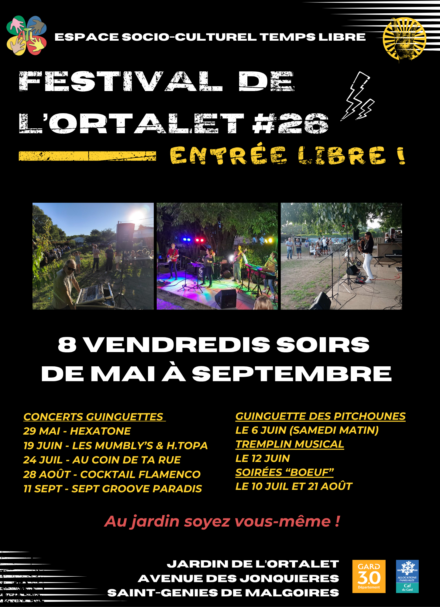 Nous espérons vous retrouver nombreux au jardin de l’Ortalet pour partager ces beaux moments de culture, de musique et de convivialité.