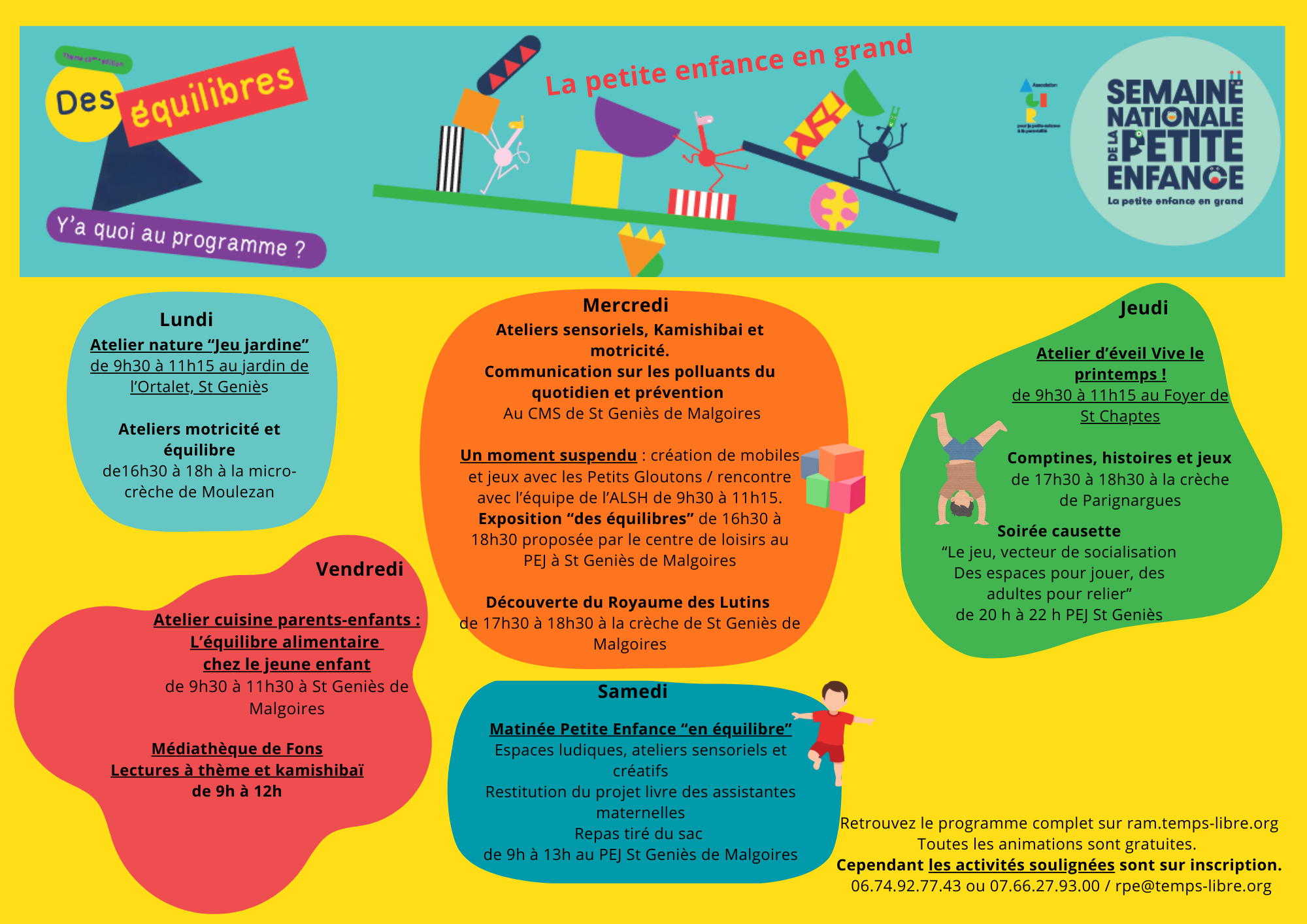 La Semaine de la Petite Enfance s’invite sur le territoire du Syndicat Mixte Leins Gardonnenque, la commune de Domessargues, La Calmette et St Chaptes pour sa troisième édition.Du 16 au 21 mars 2026, les différents partenaires de la Petite Enfance (RPE, PMI, centre de loisirs, crèches et médiathèque) proposeront aux familles et aux assistantes maternelles des activités, des portes ouvertes sur le thème “des équilibres” et une soirée causette sur “le jeu, vecteur de socialisation”.